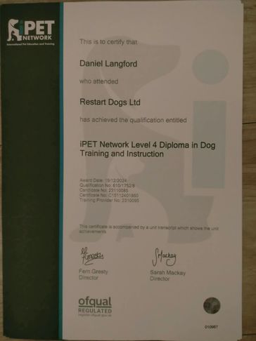 You can be confident that your puppy will be well trained, always with an eye of their welfare. Our head trainer, Dan, has a Level 4 Diploma in Dog Training and Instruction, Level 3 Award in Canine Emergency First Aid and Level 2 Award in Canine Care and Welfare. Comprehensive study has given us the insight to create training programs des
